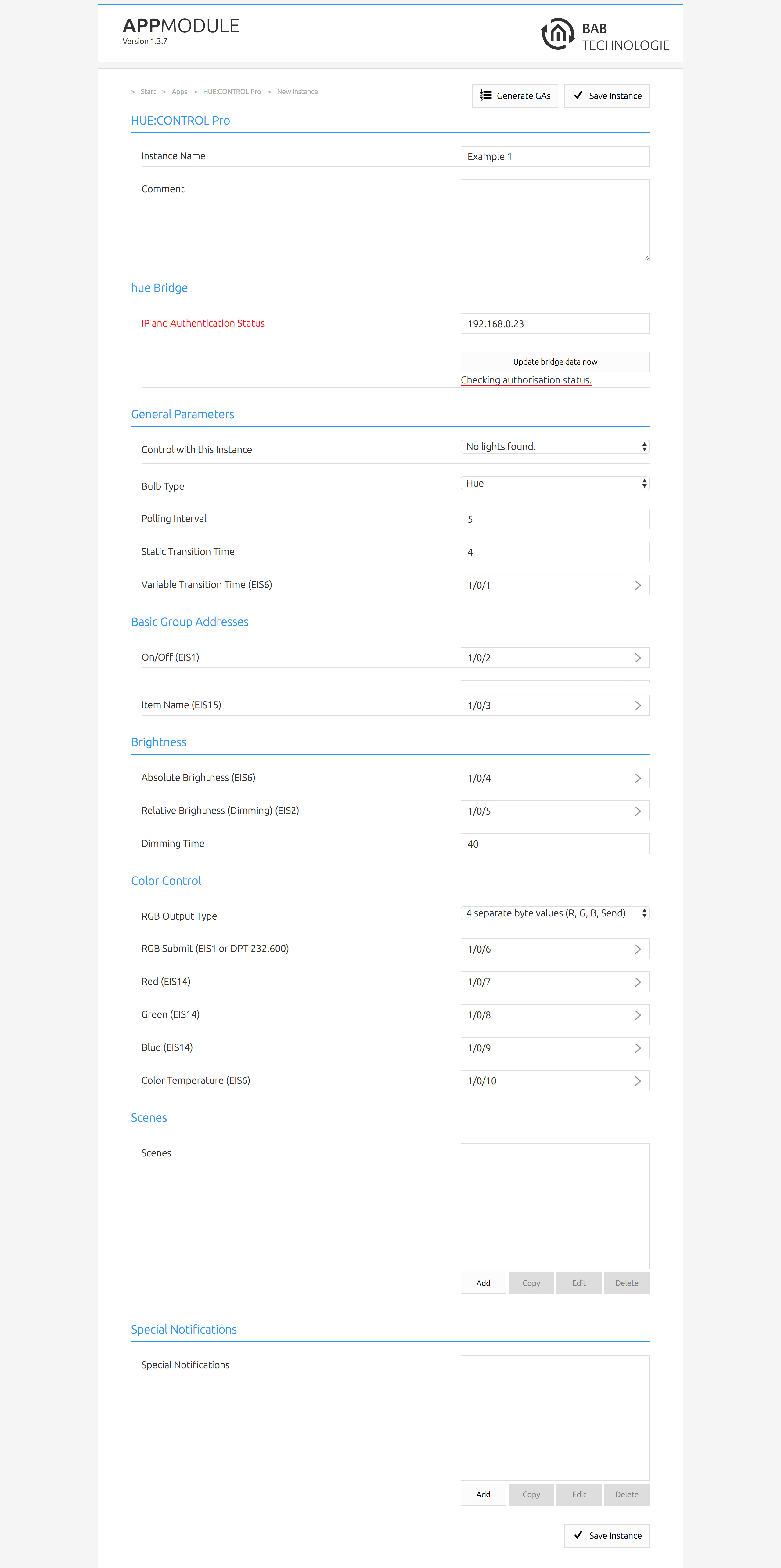 This App connects your Philips® hue Bridge with KNX® so that you have access to all connected Philips hue lights through the building automation. The simple authorisation process makes connection particularly easy. The 50 freely definable "Alerts" which the hue lights use to inform themselves about the desired conditions (e.g. light red if the doorbell rings) are a particular feature. This version enables you to control up to 20 Philips® hue devices.