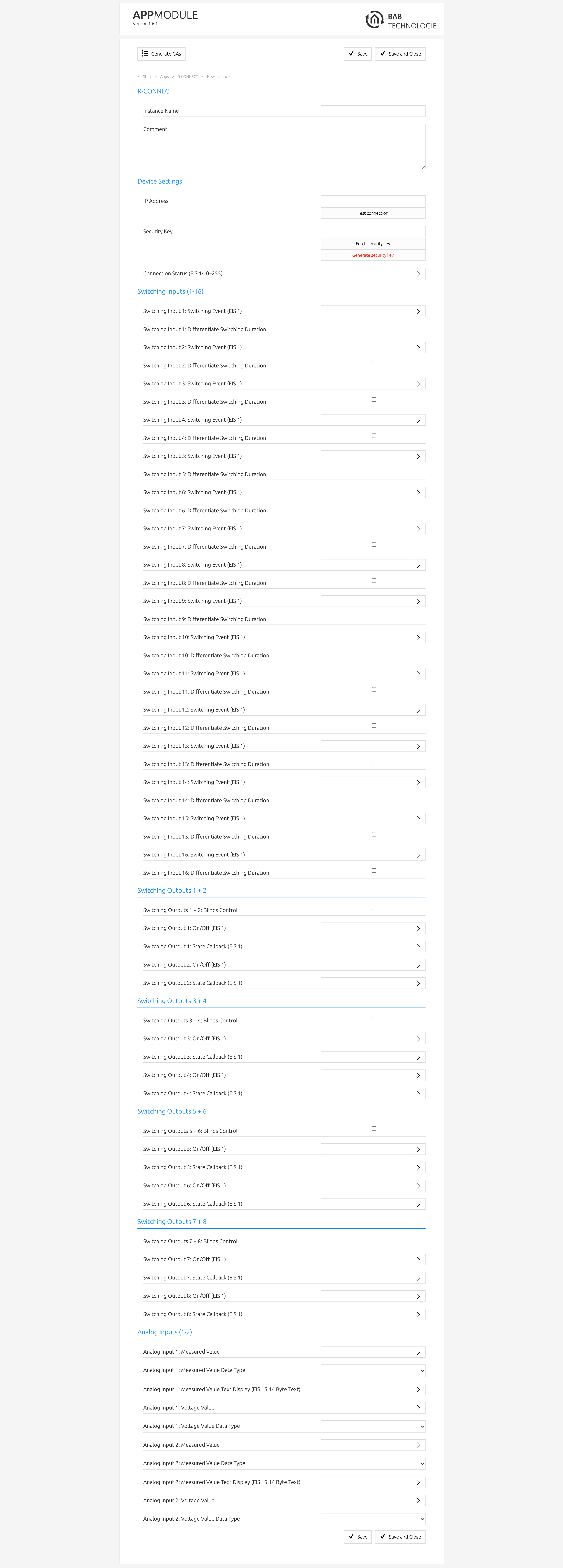 - Monitoring of up to 16 switching inputs